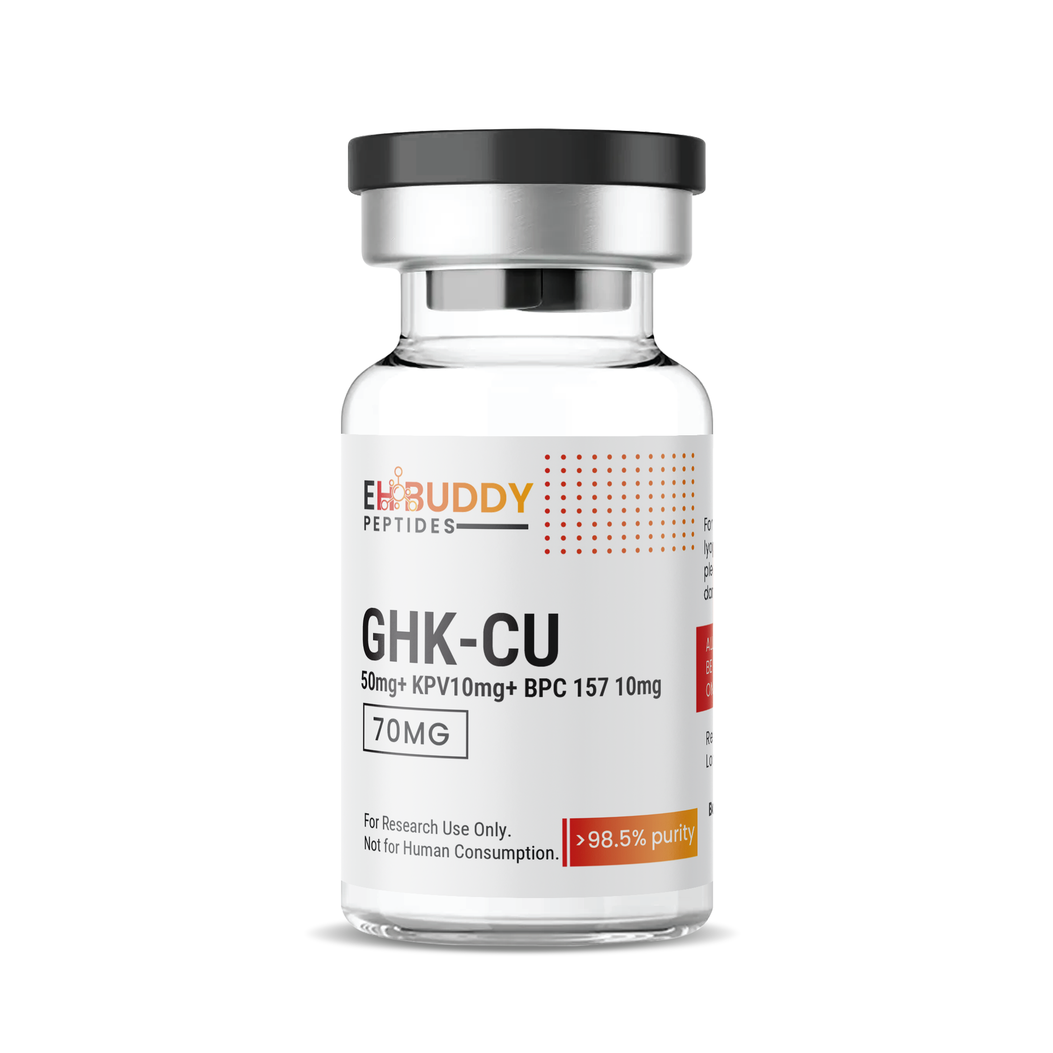 Research-grade triple peptide blend GHK-Cu 50mg + KPV 10mg + BPC-157 10mg, 10 vials. For research use only.
